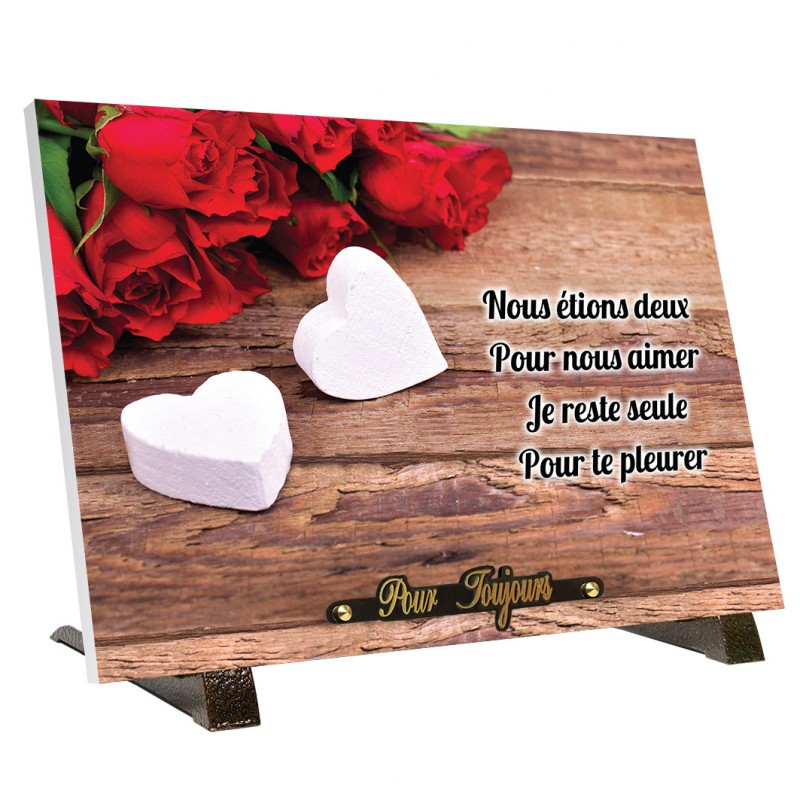 Plaque Funéraire "Coeur et roses rouges"