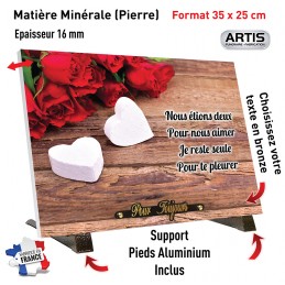 N’oubliez pas de sauvegarder votre personnalisation pour pouvoir l’ajouter au panier- Plaque funéraire minérale (pierre) sur pieds